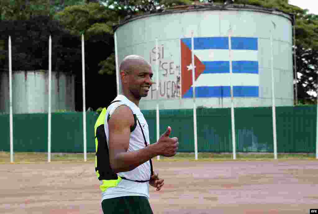 Bajo las palmas de La Habana se entrena el astro del Cosmos Raúl González.