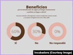 El 60% de los encuestados respondió afirmativamente el haber recibido “algún privilegio institucional o político al llegar a EEUU”, mientras el 30% dijo que no y el resto prefirió no responder.