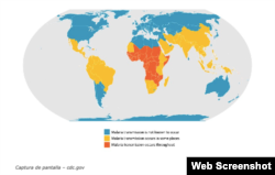 Los Centros para el Control y la Prevención de Enfermedades (CDC) de EEUU informan que las tasas más altas de transmisión de malaria ocurren en el África subsahariana y partes de Oceanía, como Papúa Nueva Guinea. En regiones más frías, la transmisión es menos intensa y es un fenómeno estacional. En muchas regiones templadas, como Europa Occidental y los Estados Unidos, el desarrollo económico y las medidas de salud pública han eliminado la malaria. Sin embargo, según los CDC, la mayoría de estas regiones albergan mosquitos Anopheles, que pueden transmitir la malaria, lo que conlleva un riesgo constante de reinfección.